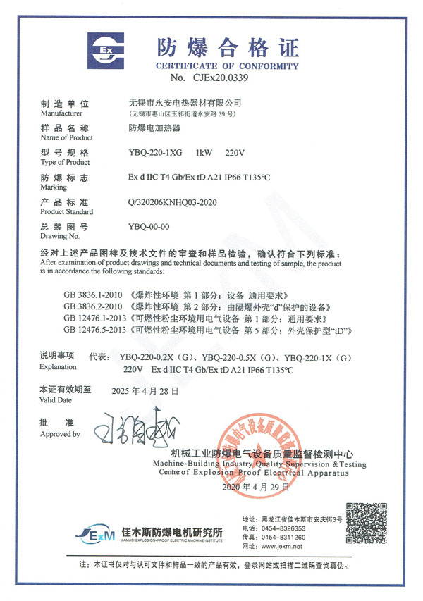 防爆证-箱体防爆电加热器